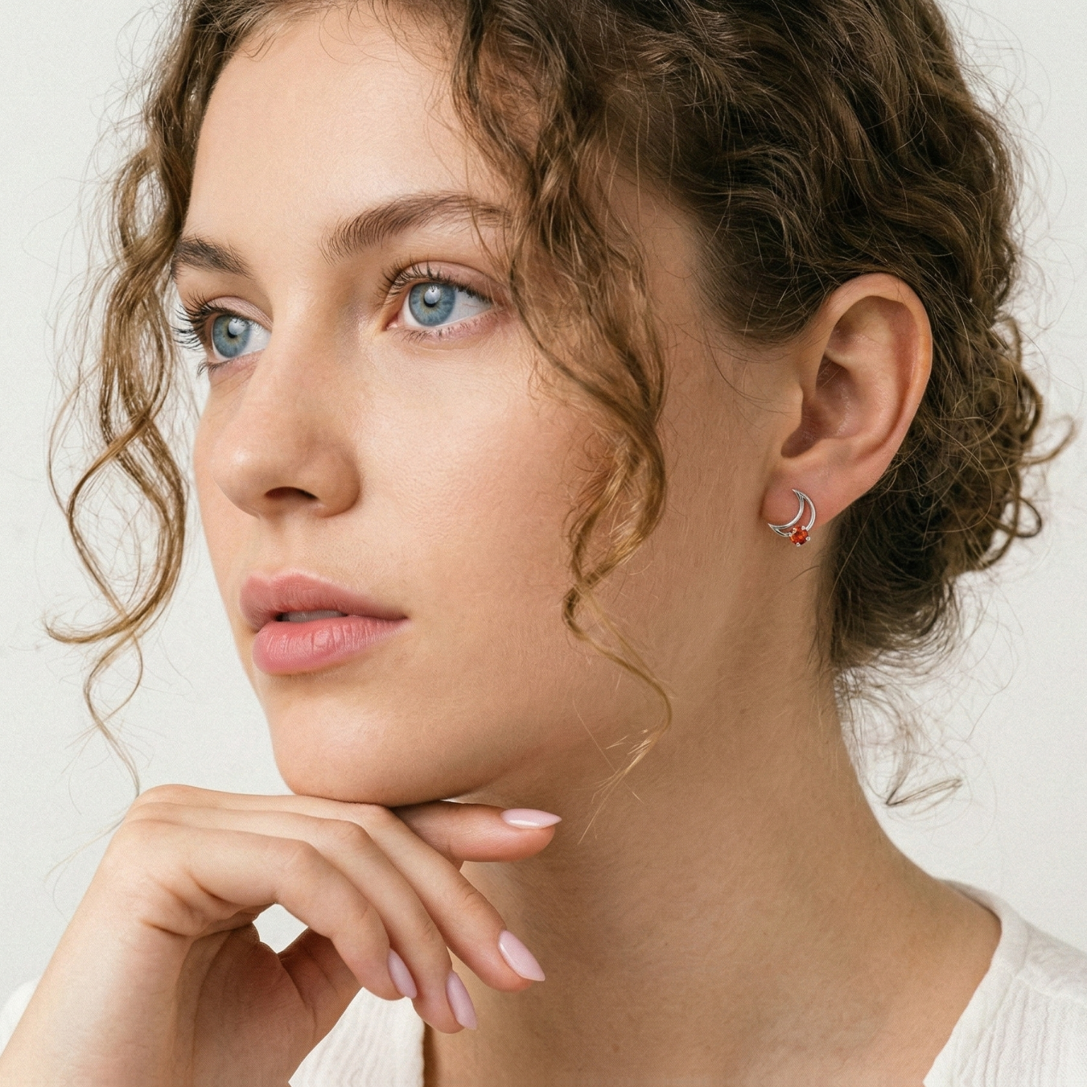 In the vastness of the unknown, you are your own North Star. The Cosmic You Collection celebrates the magic of the 'stardust and intent' that defines your path. These Orange Sapphire Earrings are designed to be lived in—a celestial sanctuary for your aura. The concentrated, solar glow of the round stones is cradled by a polished rhodium crescent, capturing the cool brilliance of the night sky against the warmth of a rising sun. More than an elegant statement, they are a quiet authority—a celebration of the infinite spark you carry into every new day.
