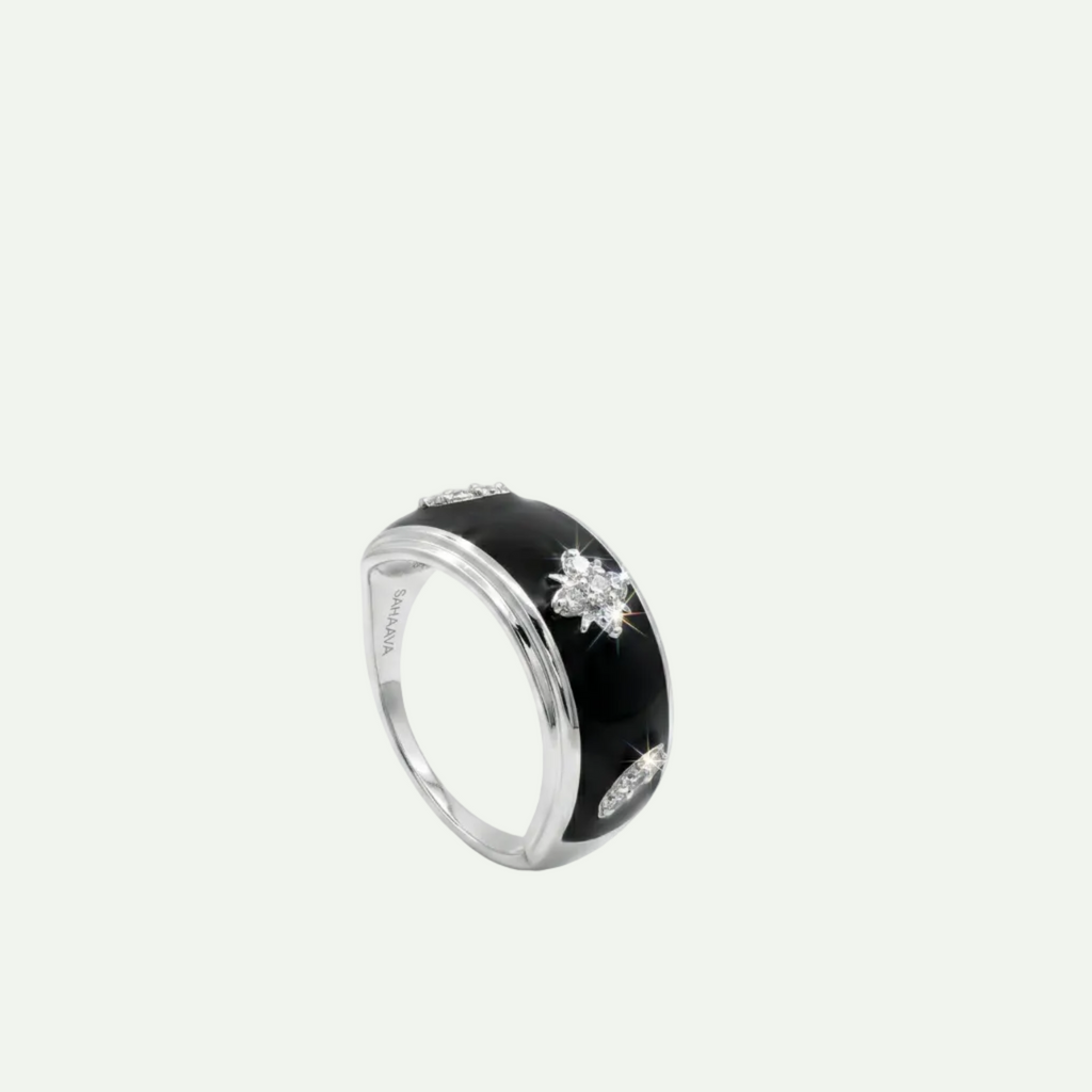 In a world of noise, there is luxury in the quiet pulse of one colour and one soul. The Sovereign Hue Collection celebrates the "stardust and intent" that defines your sovereign path. This Hand-Painted Enamel Ring is designed to be lived in—a minimalist sanctuary for your finger. The deep black enamel represents the vastness of your journey, while the precision-cut White Topaz radiates a concentrated brilliance, held fast by a steadfast sterling silver core. More than an elegant statement, it is a quiet authority—a celebration of the infinite spark you carry into every new dawn.
